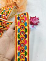 Vibrant Kachi Embroidery Lace with Circular Mirrors for Saree, Lehenga, Blouse, Dupatta, & Crafts (9meter, 50mm width)-S 892
